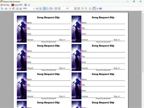 Karaoke Request Slip Generator - Generate professional song request slips for use in karaoke and dj shows. Just customize the form template and add your. Easy intuitive interface makes the task of creating professional request slips a breeze. Check out how easy it is to complete and esign documents online using fillable templates and a powerful editor. Request songs and manage karaoke bookings through this.